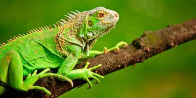 Lamentablemente, estas no son fáciles de cuidar y morirán si no se les brindan los cuidados apropiados. Esto se debe a que estos reptiles tienen diversas necesidades ambientales y dietéticas únicas. No obstante, si creas un buen hábitat y alimentas a tu iguana de forma apropiada, esto garantizará que crezca saludable en su nuevo hogar. 1 Bríndale mucha luz. Para desarrollarse, las iguanas necesitarán acceso a determinados tipos de luz, y las más importantes serán las luces que pertenezcan al espectro ultravioleta B. Sin este tipo de iluminación, la iguana podría sufrir una insuficiencia de vitamina D, ser incapaz de absorber calcio y presentar otros problemas de salud. Compra luces de mercurio y fluorescentes que emitan luz ultravioleta B (UVB). La luz ultravioleta B deberá cubrir todo el hábitat, pero tendrás que colocar una luz de 30 a 45 cm (de 12 a 20 pulgadas) por encima del área de reposo del animal. 2 Instala una fuente de calor para tu iguana. La mayoría de los climas son más frescos que los de los entornos en donde las iguanas se desarrollan; por ello, tendrás que instalar una fuente de calor en el hábitat que le brindes. Este es un punto importante, ya que la iguana no se desarrollará si hace demasiado frío. El área más fresca del hábitat de tu iguana deberá tener una temperatura entre los 24 y los 27 °C (entre 75 y 80 °F). Mantén la temperatura del "área de reposo" entre los 35 y 38 °C (entre 95 y 100 °F) 3 Instala termostatos en el hábitat. Coloca un termostato en el centro y otro en el borde del hábitat. De este modo, podrás supervisar la temperatura en diferentes áreas del mismo. Básicamente, esto te ayudará a garantizar que la temperatura y el clima sean los correctos para tu iguana. 4 Crea un área de reposo. Esta será un área del hábitat en donde la iguana podrá disfrutar del calor y la luz. Esta será vital para hacer feliz a tu mascota. Si no hay un área de reposo, la jaula no imitará el entorno natural de la iguana. Las áreas de reposo deberán tener lo siguiente: un área plana grande en donde la iguana pueda echarse; luz directa de una bombilla de luz UVB; una roca calefactora u otra fuente directa de calor que esté cerca. Como equipar para que la iguana este cómoda Compra una jaula grande. Usa una jaula que mida como mínimo 2,5 x 1 x 2 m (8 x 3 x 6 pies). Como regla general, lo mejor será que uses una jaula lo más grande posible. Si la iguana no tiene espacio suficiente, no podrá desarrollarse y podría enfermarse o deprimirse. Las jaulas metálicas suelen ser las más asequibles y prácticas. Estas permitirán que fluya mucho aire y que puedas limpiar con facilidad. No obstante, deberás cerciorarte de que los espacios entre el metal sean lo suficientemente pequeños como para evitar que la iguana se escape. Coloca substrato en todo el fondo del hábitat. Una vez que hayas escogido la jaula o la casa de tu mascota, tendrás que colocar substrato en todo su fondo. Usa una alfombra especial para reptiles, pedazos de periódico o material de cama, u otros objetos. No uses corteza, pedazos de madera, madera tratada o plástico. Coloca objetos que tu mascota pueda trepar. A las iguanas les gusta vivir en áreas muy boscosas; por lo tanto, la tuya necesitará mucho espacio y diferentes tipos de objetos que pueda trepar. Para ello, puedes colocar diversas ramas grandes o plataformas especiales en el hábitat. Además, puedes colocar una variedad de rocas que también pueda trepar. Toda rama o estructura que coloques en el hábitat deberá ser lo suficientemente grande y resistente como para soportar el peso de tu mascota. Coloca rampas que la iguana pueda trepar para acceder a diferentes niveles del hábitat. Consigue rocas lisas o planas en las que pueda echarse con comodidad. Crea un escondite. Una caja o un área similar a una cueva permitirán que la iguana pueda ocultarse cuando se sienta amenazada o asustada. Básicamente, un escondite es una parte importante de todo hábitat de iguanas. Si la tuya no tiene uno, se sentirá vulnerable y quizás no se desarrolle. Coloca una caja de madera pequeña debajo de algunas rocas. Coloca plantas pequeñas en el hábitat. Estas harán que el hábitat de tu iguana se convierta en un entorno más interesante y que se asemeje más a las áreas en las que viva en la naturaleza. Tu mascota podría comérselas u ocultarse detrás de ellas, lo que dependerá de la especie de las mismas. Estas son algunas plantas que puedes incluir: acacia aloe bambú cardo árbol de jade diente de león Evitar problemas comunes 1 No alojes a varias iguanas en una misma jaula. Por lo general, no deberás colocar a varias iguanas en la misma jaula; de lo contrario, estas podrían pelearse y lesionarse. Puedes albergar a varias iguanas en una misma habitación o área, siempre y cuando estén en jaulas separadas. Si por algún motivo estás contemplando la opción de colocar a más de una iguana en una sola jaula, primero deberás consultar con un veterinario. 2 Lava sus tazones de comida y agua. Lava sus tazones de comida antes de darle alimentos frescos. También deberás limpiar sus tazones de agua a diario. Usa agua tibia y un lavavajillas suave para limpiar los tazones de comida y agua. 3 Limpia su hábitat con frecuencia. Para garantizar la salud y el bienestar de tu iguana, tendrás que limpiar diversas áreas de su hábitat a diario. Retira la comida estropeada y otros desechos todos los días. Retira el sustrato manchado aproximadamente en intervalos de una semana. También retira los objetos rotos del hábitat, como las ramas. Que comen la iguana Las iguanas tienen dos filas de dientes (una superior y otra inferior) de pequeño tamaño, que utilizan para partir un trozo de comida y tragarlo después sin masticarlo. Por lo tanto, para facilitarle el trabajo y asegurarnos de que ingiere correctamente los alimentos, éstos deben estar cortados en trozos pequeños y un poco templados, la comida m